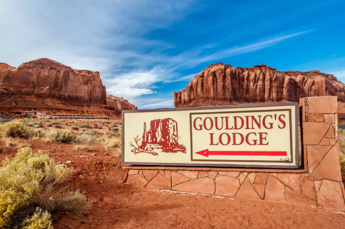 유타주 MONUMENT VALLEY에 위치한 GOULDING'S LODGE는 2층 높이에 73개의 객실을 보유한 중규모 호텔이다. 호텔 내에는 수영장, 피트니스센터 시설이 구비되어 있으며 장애인 전용 객실도 마련되어 있다. 또한 Goulding's 레스토랑이 있어 다양한 메뉴를 즐길 수 있으며 룸서비스도 가능하다. 미국의 서부의 모습을 보고싶어하는 여행객이 찾기 적합한 장소라 할 수 있으며 사막을 비롯한 아룸다운 자연의 경관을 즐기기에 적합한 곳이라 할 수 있다.