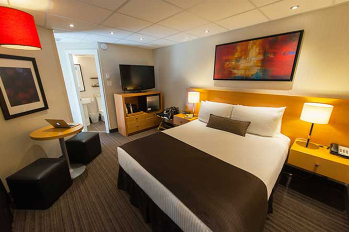 밴프 다운타운에 위치한 호텔로 근처 식당이나 카페, 식료품 마켓과도 도보 이동이 가능합니다. 연한 색채의 우드톤으로 장식된 객실은 밝고 깨끗한 인상을 둡니다. 아늑한 이코노미룸 외에도 넓직한 슈페리어룸과 프리미엄 룸이 준비되어 있으며 해당 룸들은 객실 내 발코니가 설치되어 있어 상쾌한 하루를 맞이하실 수 있습니다. 리셉션에서는 간단한 간식거리와 생필품을 구매하실 수도 있습니다.