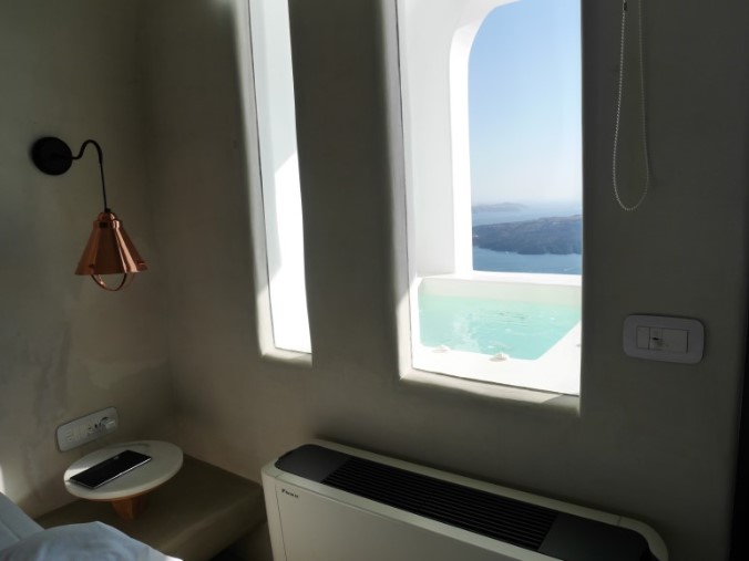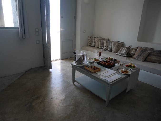 (산토리니-안드로니스럭셔리부티끄, 이아마을에 위치, 디테일한 서비스와 조식이 대박이다. 웰컴샹그리아가 나오고,웰컴샴페인이 제공된다. 침대가 좋고, 베개도 쿠션타입에 따라 선택을 할 수 있다. 직원들이 손편지를 주고, 자체 수비니어도 한봉지 챙겨준다. 조식은 가지수가 무척이나 많다는 것. 그치만 생각보다 럭셔리하지 않다는 것이 문제, 오래된 건물에 덧칠만 해서 그런지 실내자쿠지에서 수영하고 나왔더니 검정페인트가 수영복에 다 묻어나왔다.)