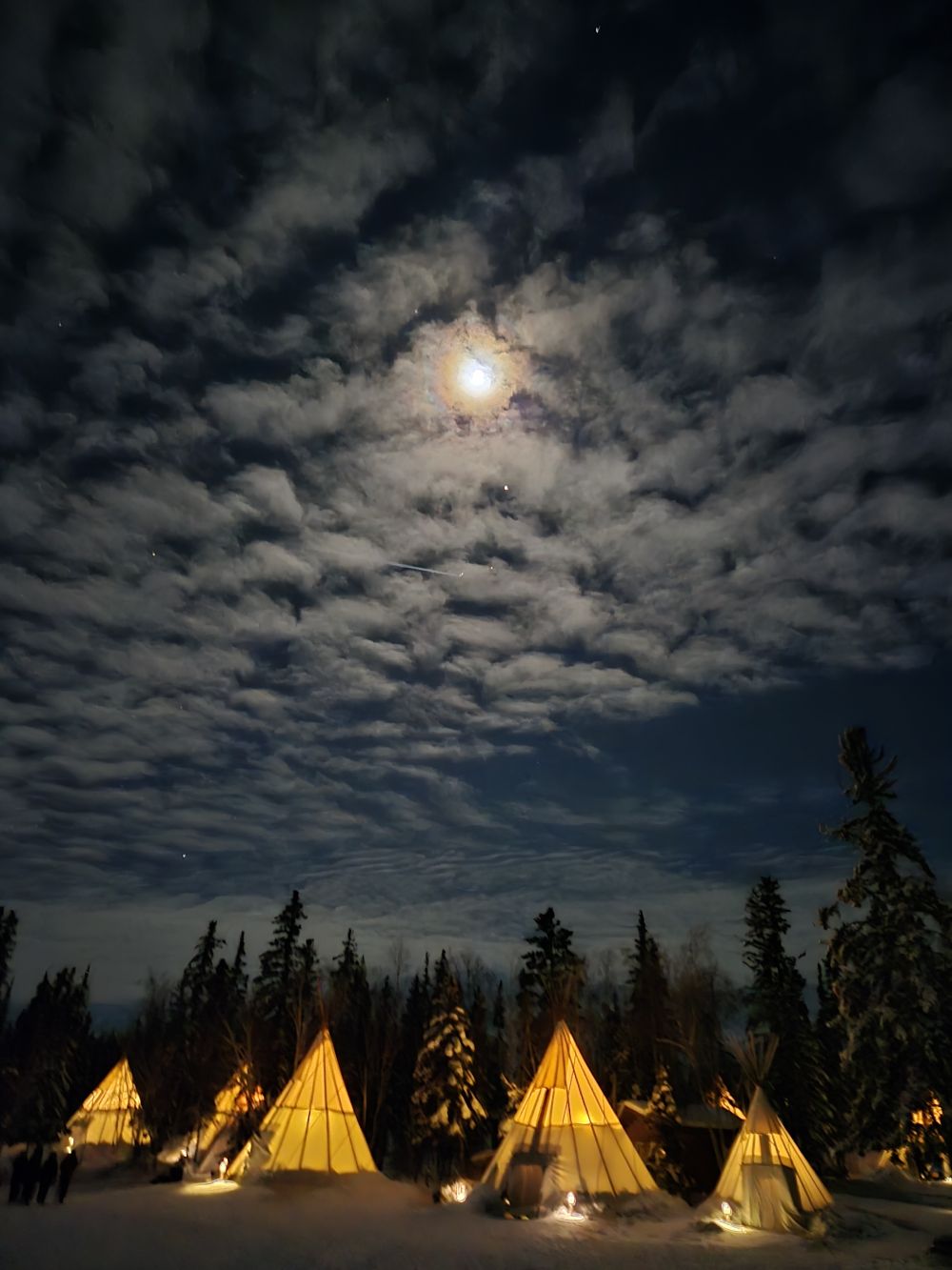 첫날부터 너무 멋진 오로라를 보니 체감온도 -30도가 춥지 않게 느껴졌습니다. 임대한 캐나다구스 자켓이랑 장갑, 바지, 신발등을 신으니 추위가 느껴지지 않았구요. 특히, 오로라를 기다리면서 Tipi에 머물렀는데 화목난로가 있어서 실내는 더위를 느낄 정도 였습니다.