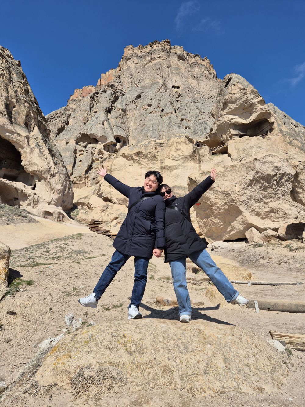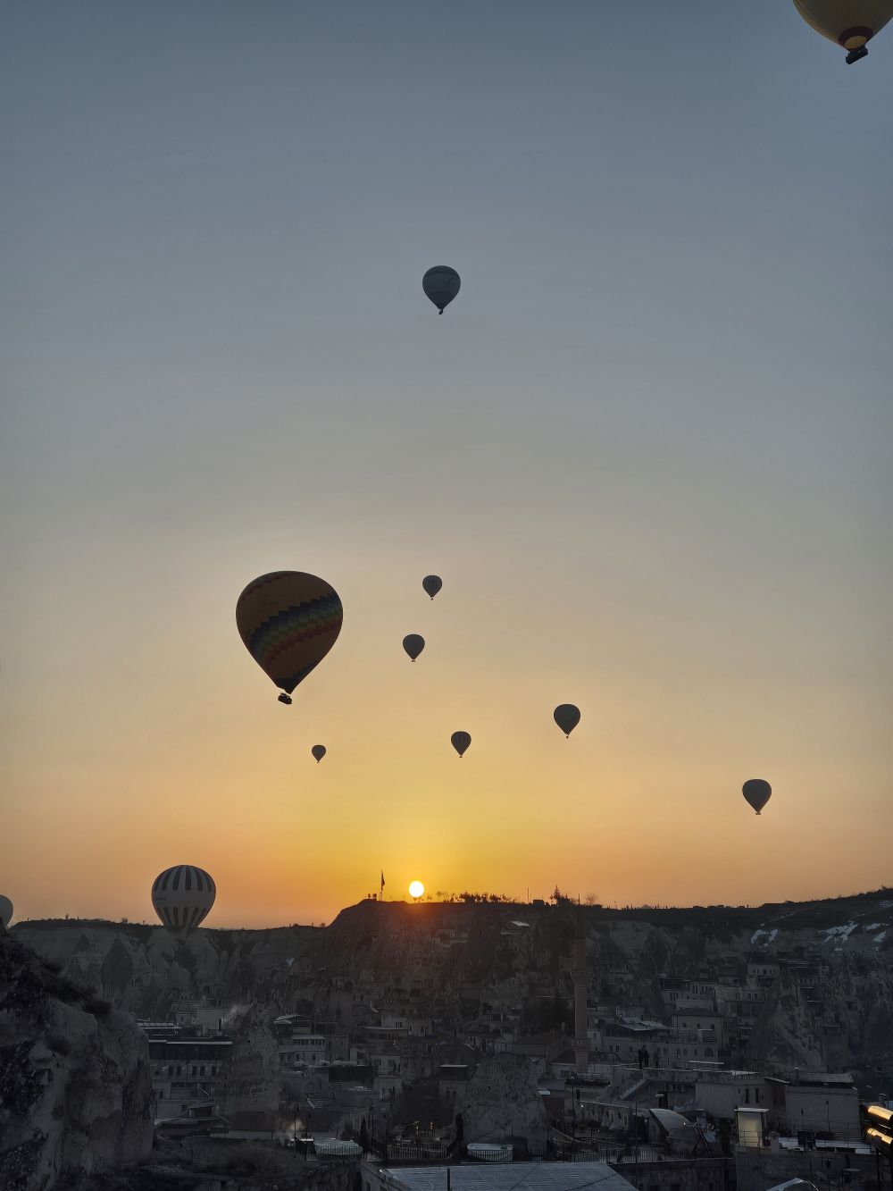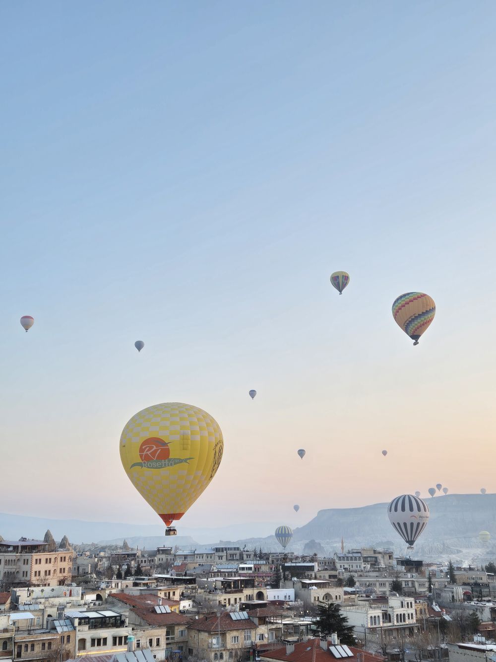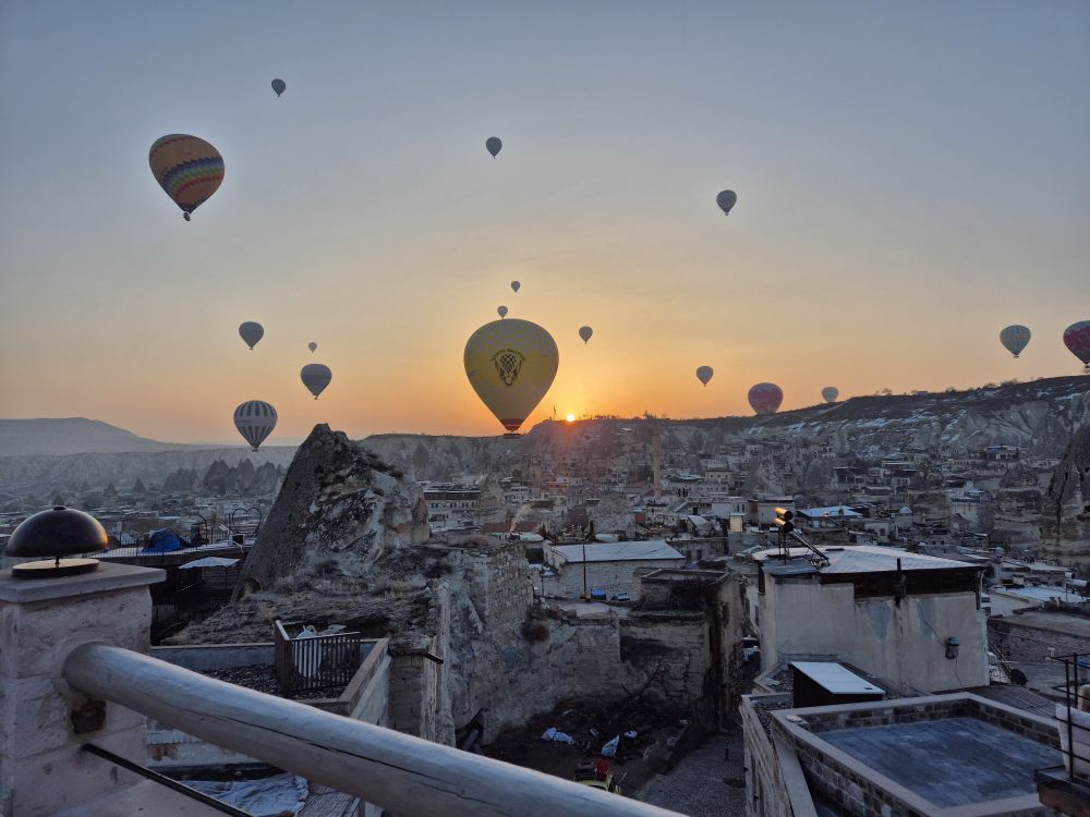 카파도키아 하면 열기구 잖아요. 첫날은 날씨가 맑았는데도 바람이 불어서 열기구가 뜨질 못했는데요. 떠나는 날 새벽 열기구가 떠서 신기하고 몽환적인 경험을 하고 왔어요. 열기구 타는건 처음부터 계획에 없어서 (제가.... 뚫려있는 높은 곳을 올라가지 못해요....) 보는 것만 으로도 정말 좋았어요. 그리고 장금화차장님께서 열기구가 잘 보이는 숙소를 잡아주셔서 따로 높은 언덕을 올라가지 않고 숙소 옥상에서도 멋진 광경을 볼 수 있었어요. 숙소 창문에서도 열기구가 뜨는게 보였고, 옥상에 올라가니 더 잘 보였어요. 열기구 타신 분들이랑 인사도 하는 진귀한 경험도 했답니다.