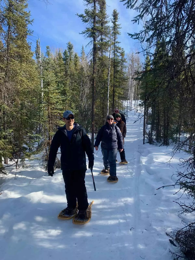 옐로나이프 시티투어, 자작나무로 만든 스노우 슈를 신고 숲속을 산책하는 스노우슈잉,