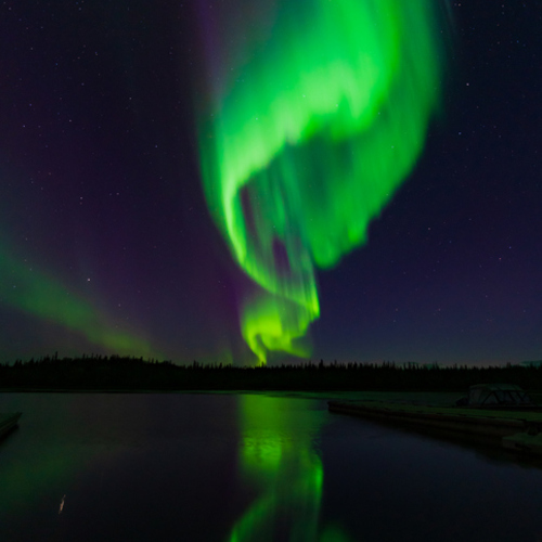 옐로나이프 시내에서 동쪽으로 차로 약 30분을 달리면 오로라 관찰을 위한 시설이 마련되어 있습니다. 이 곳이 바로 오로라 빌리지(Aurora Village)입니다. 옐로나이프 시내에서 25km 떨어진 곳에 자리잡은 완벽한 Light Free Zone으로 주변의 소음과 불빛이 없는 매우 한적한 곳에 위치하여 도심의 불빛의 방해 없이 오로라를 관측하실 수 있습니다. 북미 원주민의 전통 천막 티피(Teepee)가 있어 추운 날씨에도 오로라를 편안하게 잘 볼 수 있습니다. 오로라빌리지 내에는 티피 뿐만 아니라 다이닝홀, 기프트샵 등의 편의시설이 있어 세계 최대 규모의 오로라 관측시설을 자랑하고 있습니다.